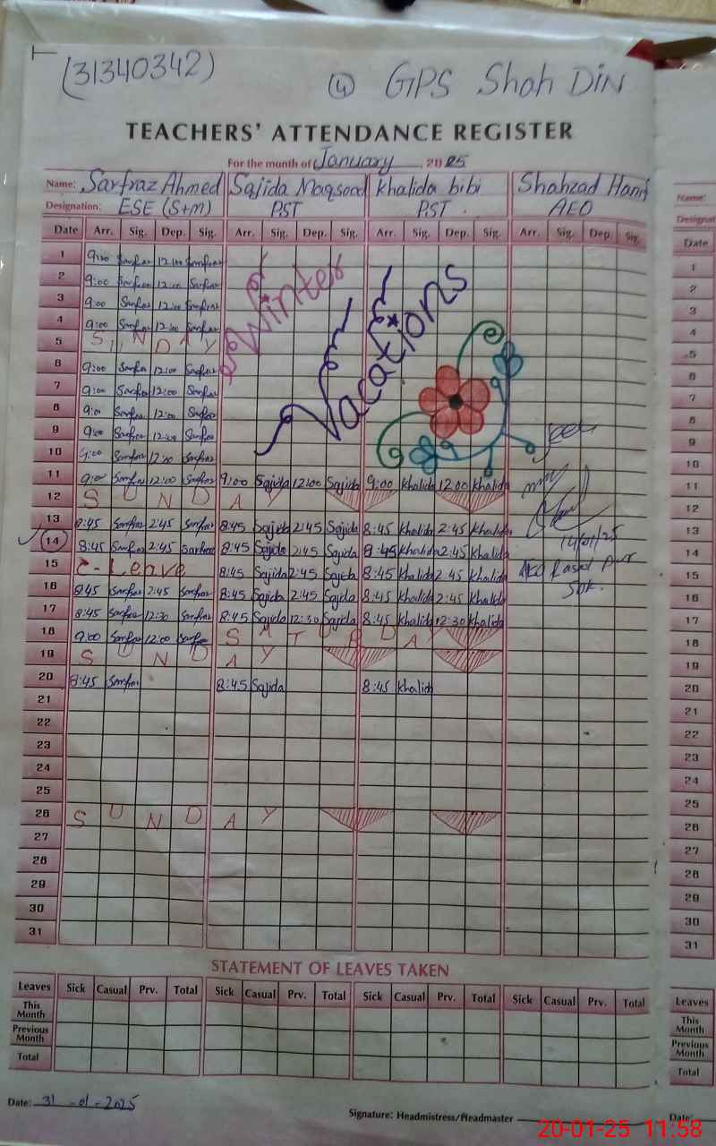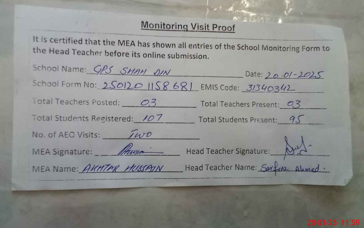| EMIS Code: 31340342 | Name of School: GPS SHAH DIN | |||