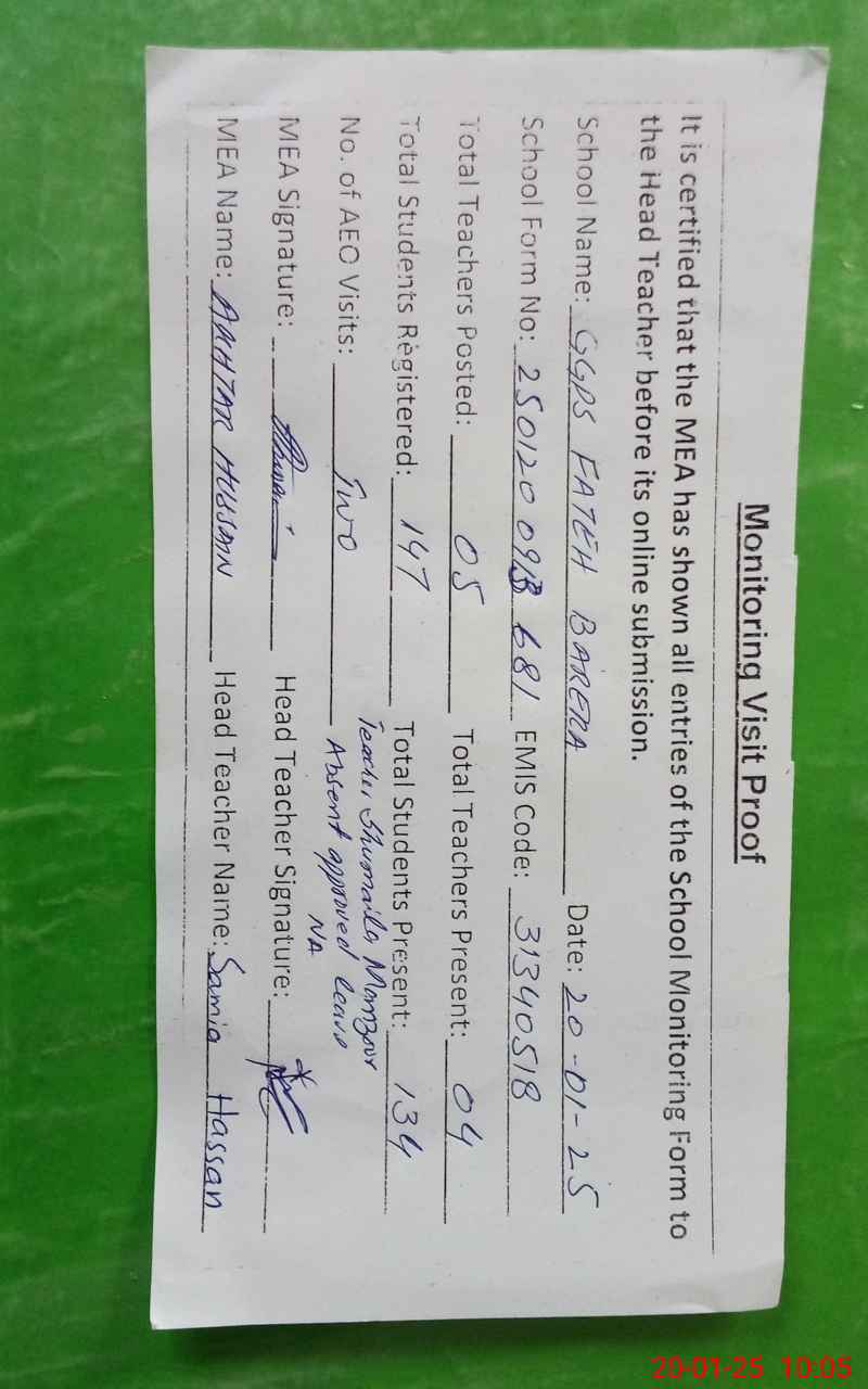 | EMIS Code: 31340518 | Name of School: GGPS FATEH BARERA | |||