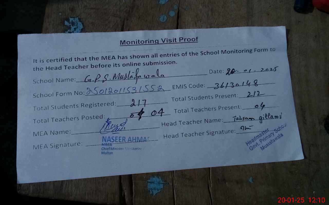 | EMIS Code: 36130148 | Name of School: GPS MUSTAFA WALA | |||