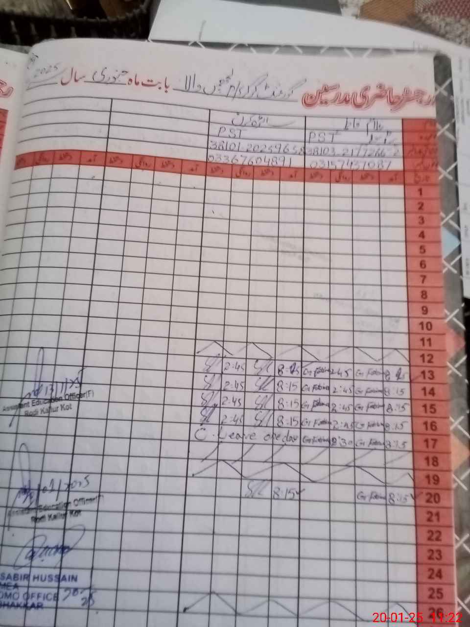 | CNIC | Full Name | Designation | R/C | Absence during last cal. month |