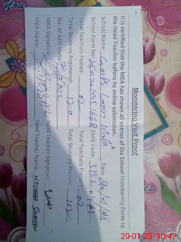 | EMIS Code: 31320463 | Name of School: GMPS LOON WALA | |||