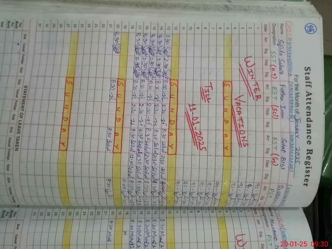 | 31**** | Na**** Pa**** | 1 | 0 | 16 | 0 | 0 | 0 | 0 | 0 | 0 | 0 | Absent (Un-Authorized) | |