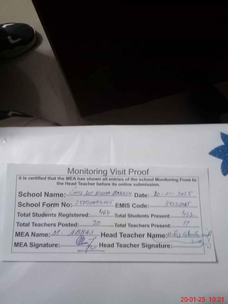 | EMIS Code: 39220015 | Name of School: GHS ARABIC MODEL KOT KHUDA BAKHSH | |||