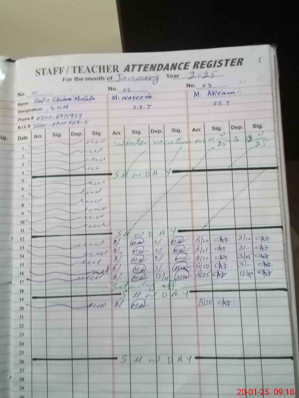 | Name: HA**** GH**** MU**** Designation: (School Headmaster's/Headmistress's) S.HM Phone/Cell Number: 03**** |