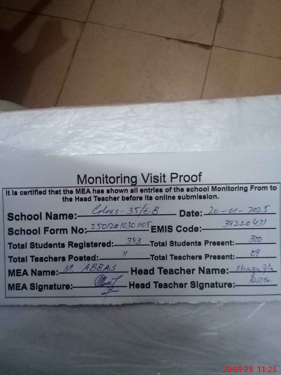 | Certified that this School was Inspected by the Undersigned MEA/DMO Today and the Information Stated Above is as Per Record. | |||||