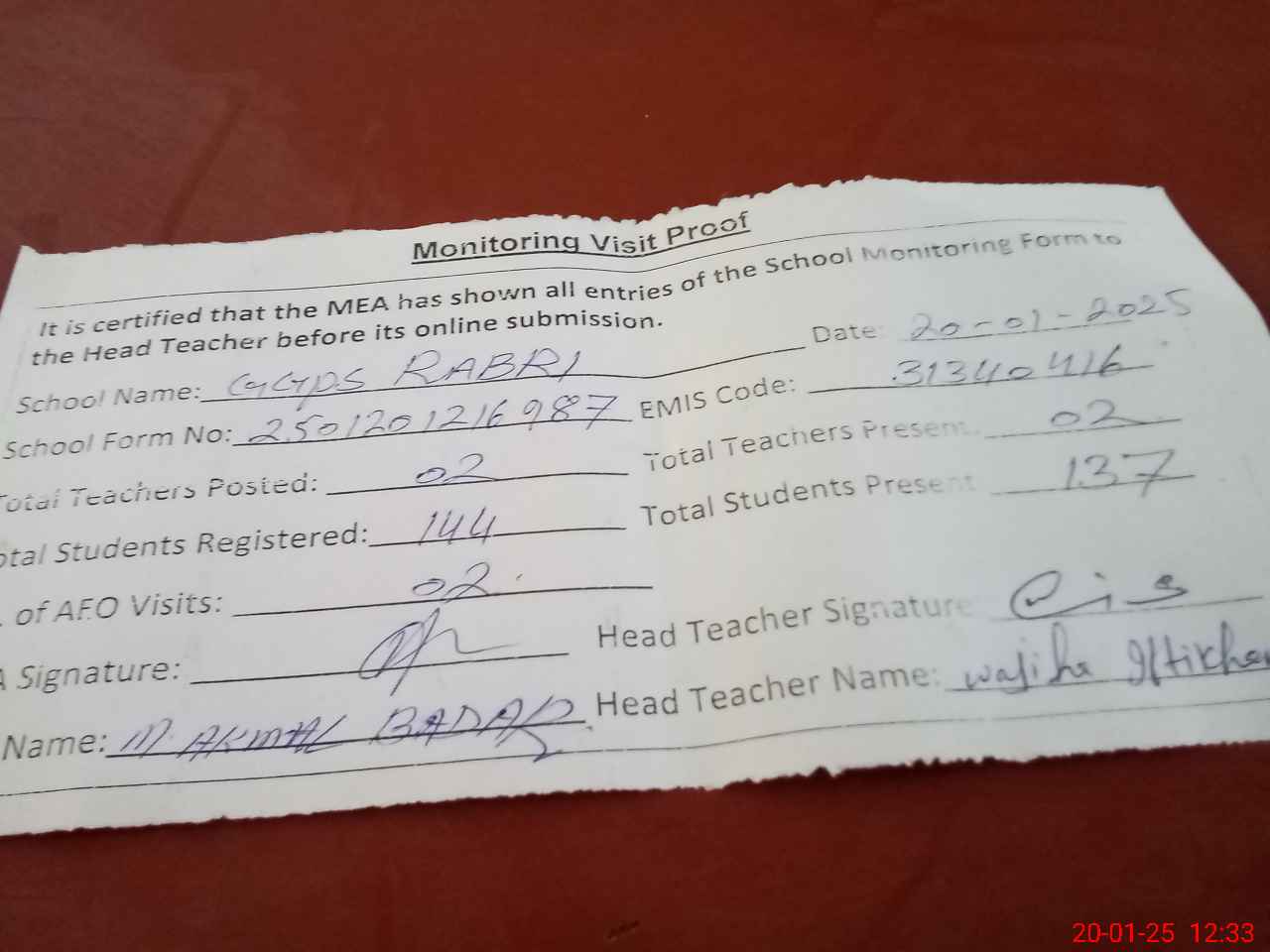 | EMIS Code: 31340416 | Name of School: GGPS RABRI | |||