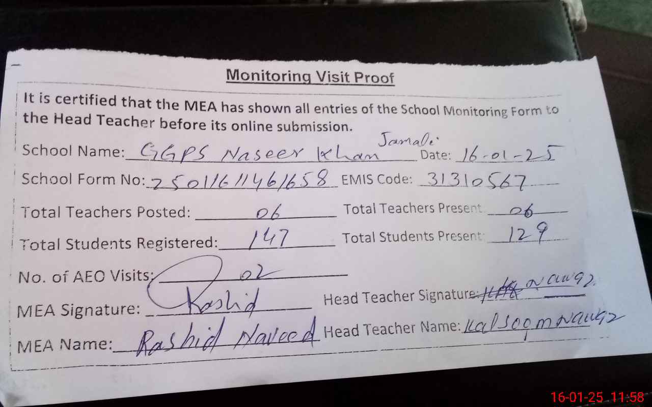 | EMIS Code: 31310567 | Name of School: GGPS NASEER KHAN JAMALI | |||