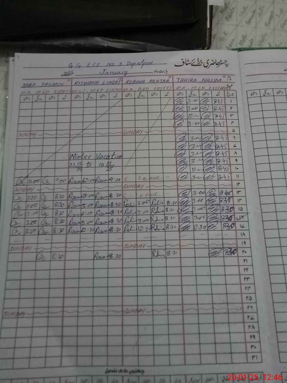 | CNIC | Full Name | Designation | R/C | Absence During Last Calender Month |