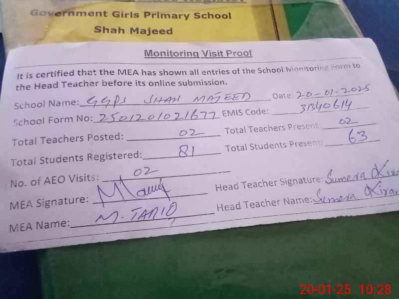 | EMIS Code: 31340614 | Name of School: GGPS SHAH MAJEED | |||