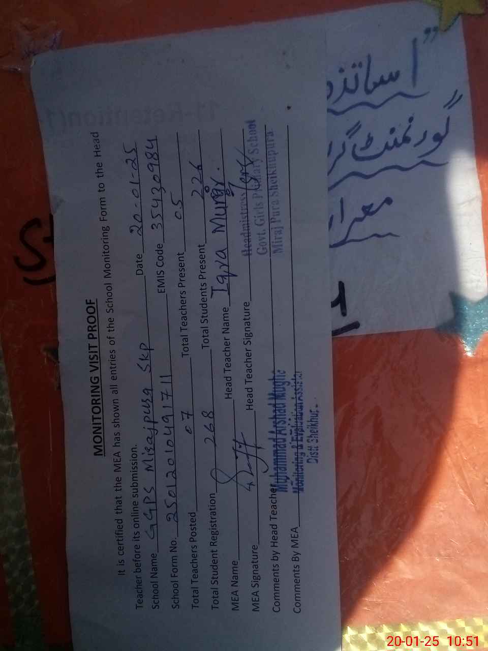 | EMIS Code: 35430984 | Name of School: GGPS MEHRAJ PURA | |||
