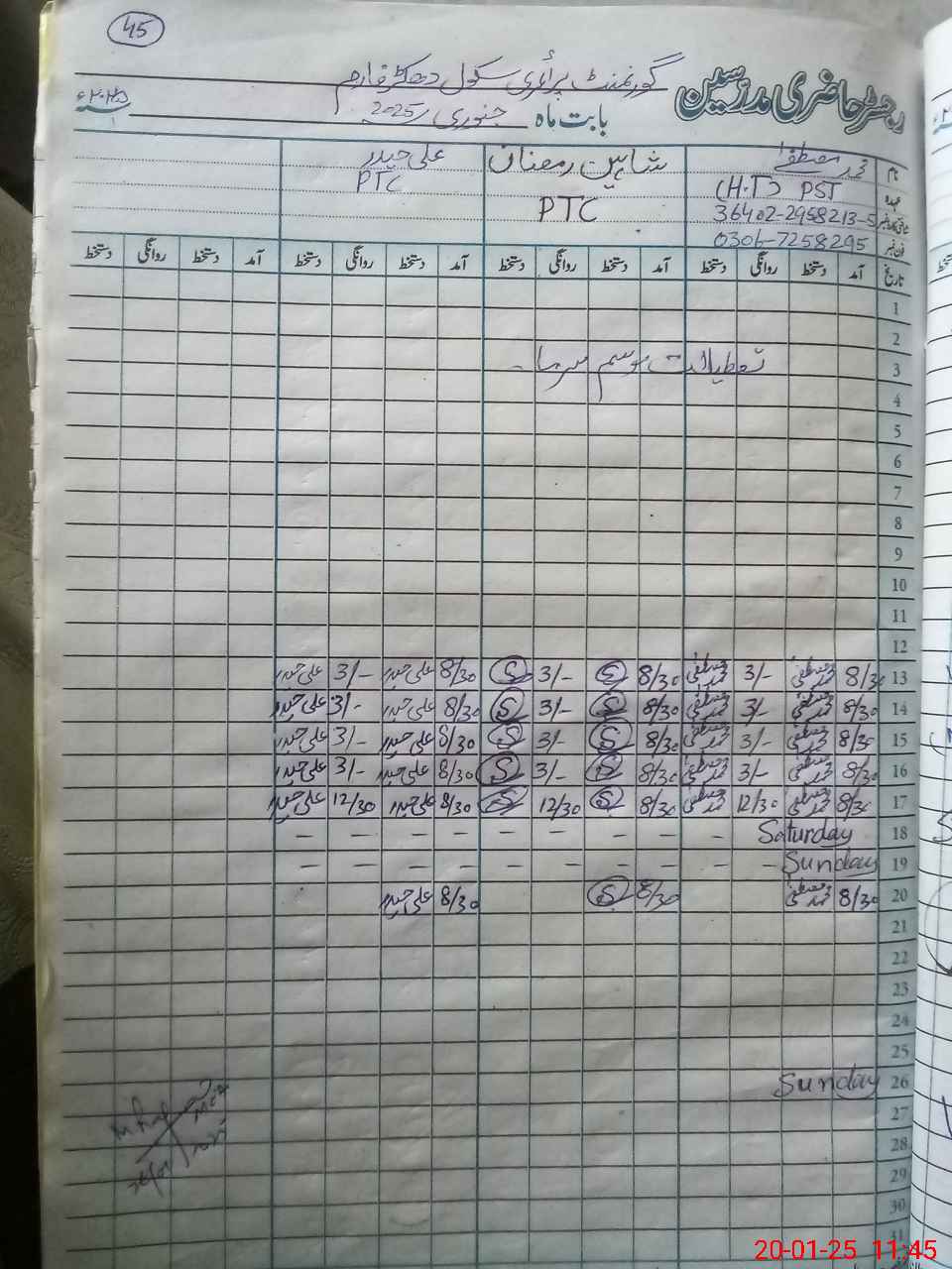 | Name: MU**** MU**** Designation: (School Headmaster's/Headmistress's) PST Phone/Cell Number: 03**** |