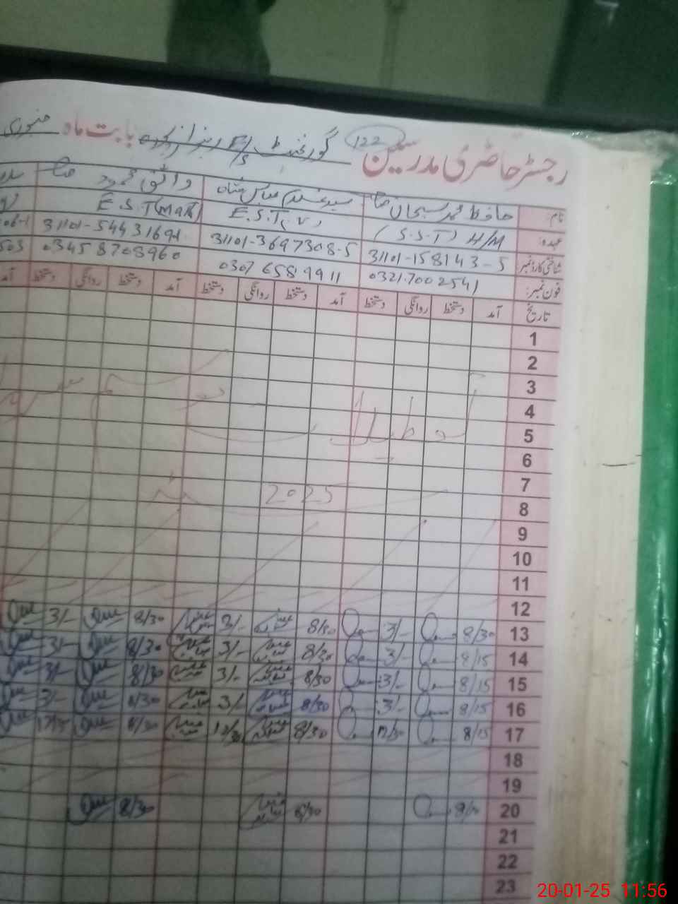 | Name: MHa**** Ba**** Designation: (School Headmaster's/Headmistress's) E S T Phone/Cell Number: 03**** |