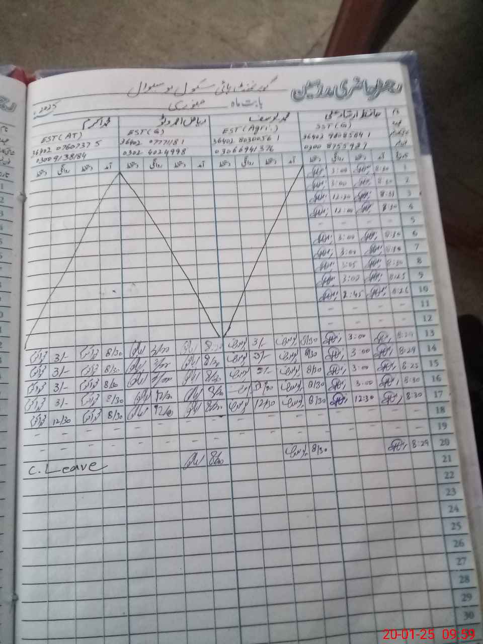 | CNIC | Full Name | Designation | R/C | Absence during last cal. month |