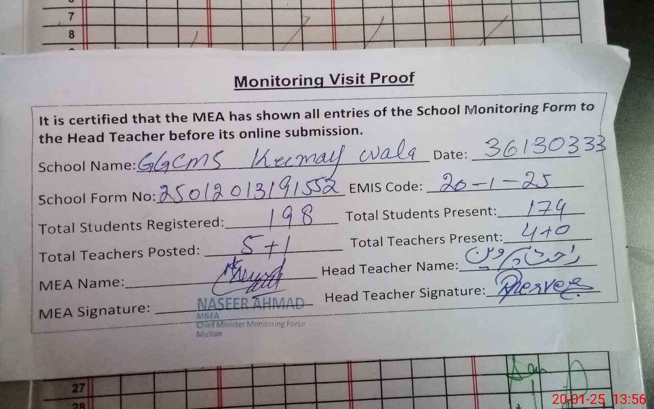| EMIS Code: 36130333 | Name of School: GGCMS KEEMAY WALA BASTI NAU | |||