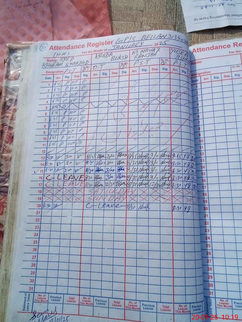 | Name: Sy**** Kh**** Sh**** Designation: (School Headmaster's/Headmistress's) PST/PTC/JV Phone/Cell Number: 03**** |