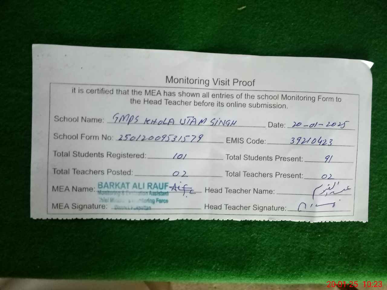 | EMIS Code: 39210423 | Name of School: GMPS KHOLA UTAM SINGH | |||