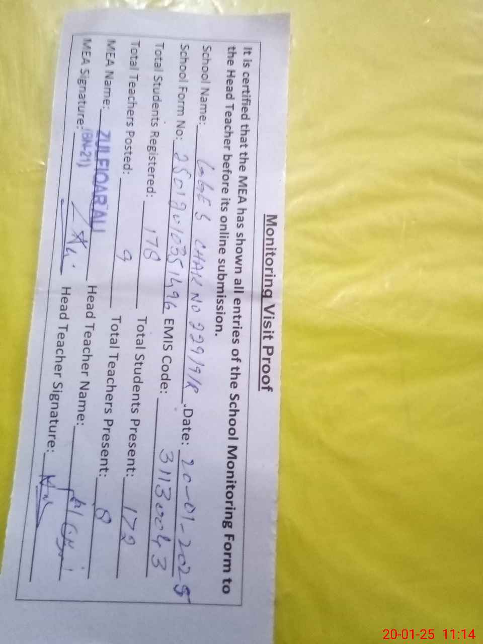 | Name: Za**** Designation: (School Headmaster's/Headmistress's) SST Phone/Cell Number: 03**** |
