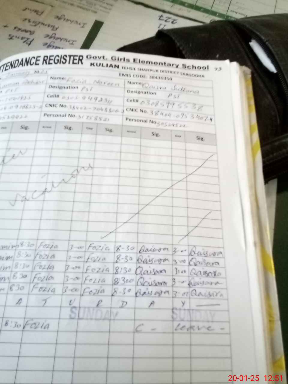 | CNIC | Full Name | Designation | R/C | Absence during last cal. month |
