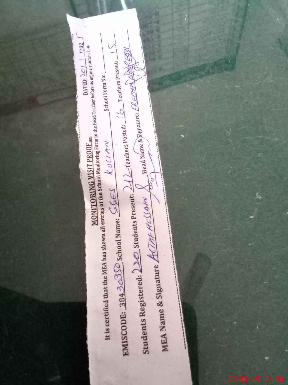 | Attendance Register | Head Teacher | MEA with School | Visit Proof |