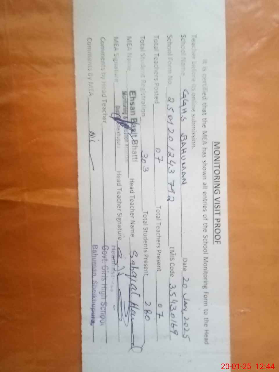 | EMIS Code: 35430169 | Name of School: GGHS BAHUMAN | |||