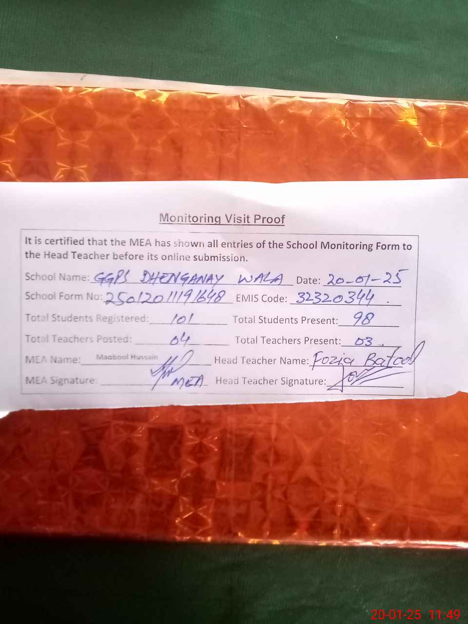 | EMIS Code: 32320344 | Name of School: GGPS DHENGANAY WALA | |||