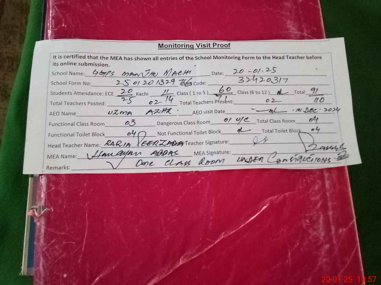 | EMIS Code: 32420317 | Name of School: GGPS MANJHU MACHHI | |||