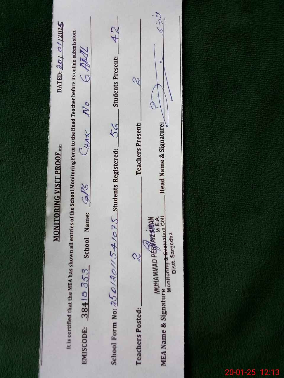 | EMIS Code: 38410353 | Name of School: GPS CHAK NO.6-A ML | |||