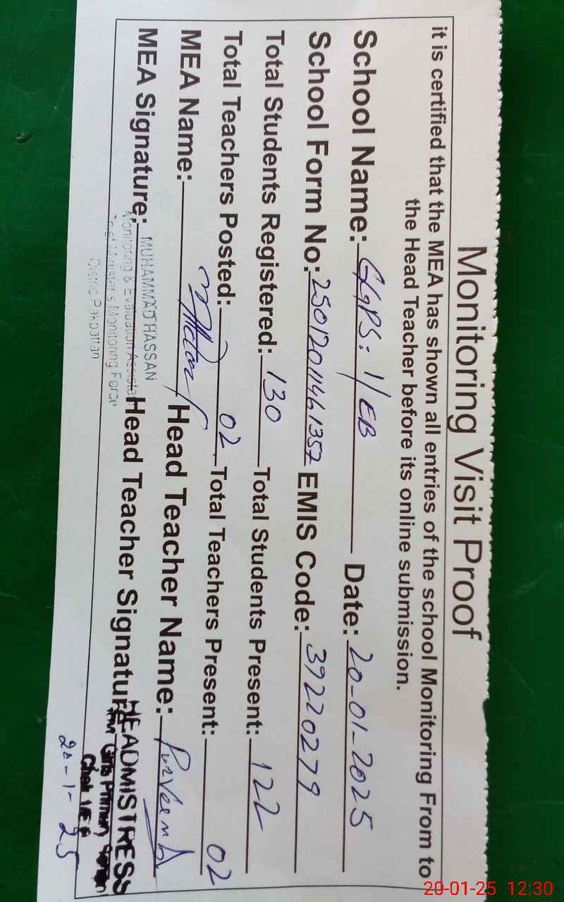 | EMIS Code: 39220279 | Name of School: GGPS 1 EB | |||