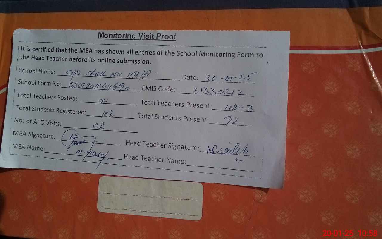 | EMIS Code: 31330212 | Name of School: GPS CHAK NO 118/P | |||