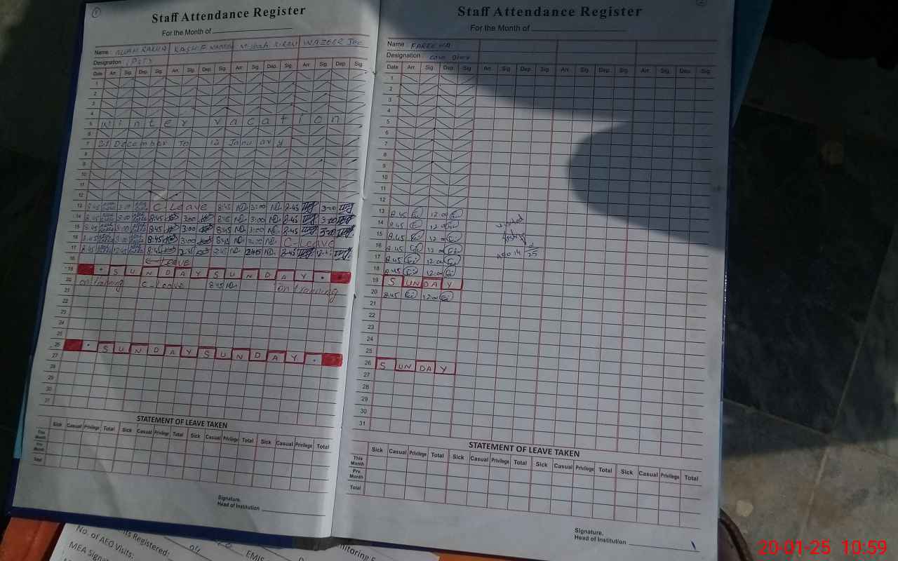 | Attendance Register | Head Teacher | MEA with School | Visit Proof |