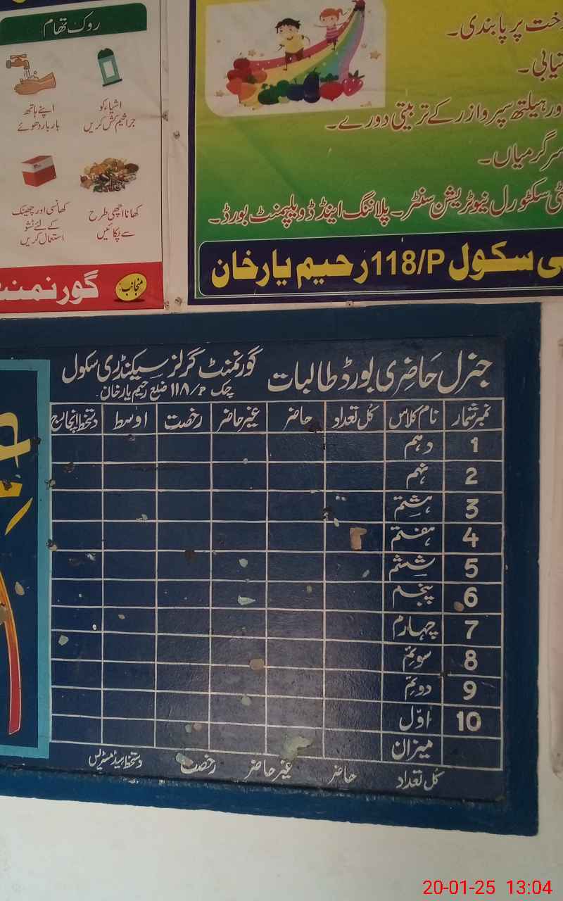 | District: RAHIMYAR KHAN | Tehsil: RAHIMYAR KHAN | Markaz: SECONDARY-WING | Level: High | |