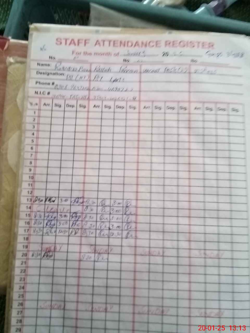 | CNIC | Full Name | Designation | R/C | Absence During Last Calender Month |
