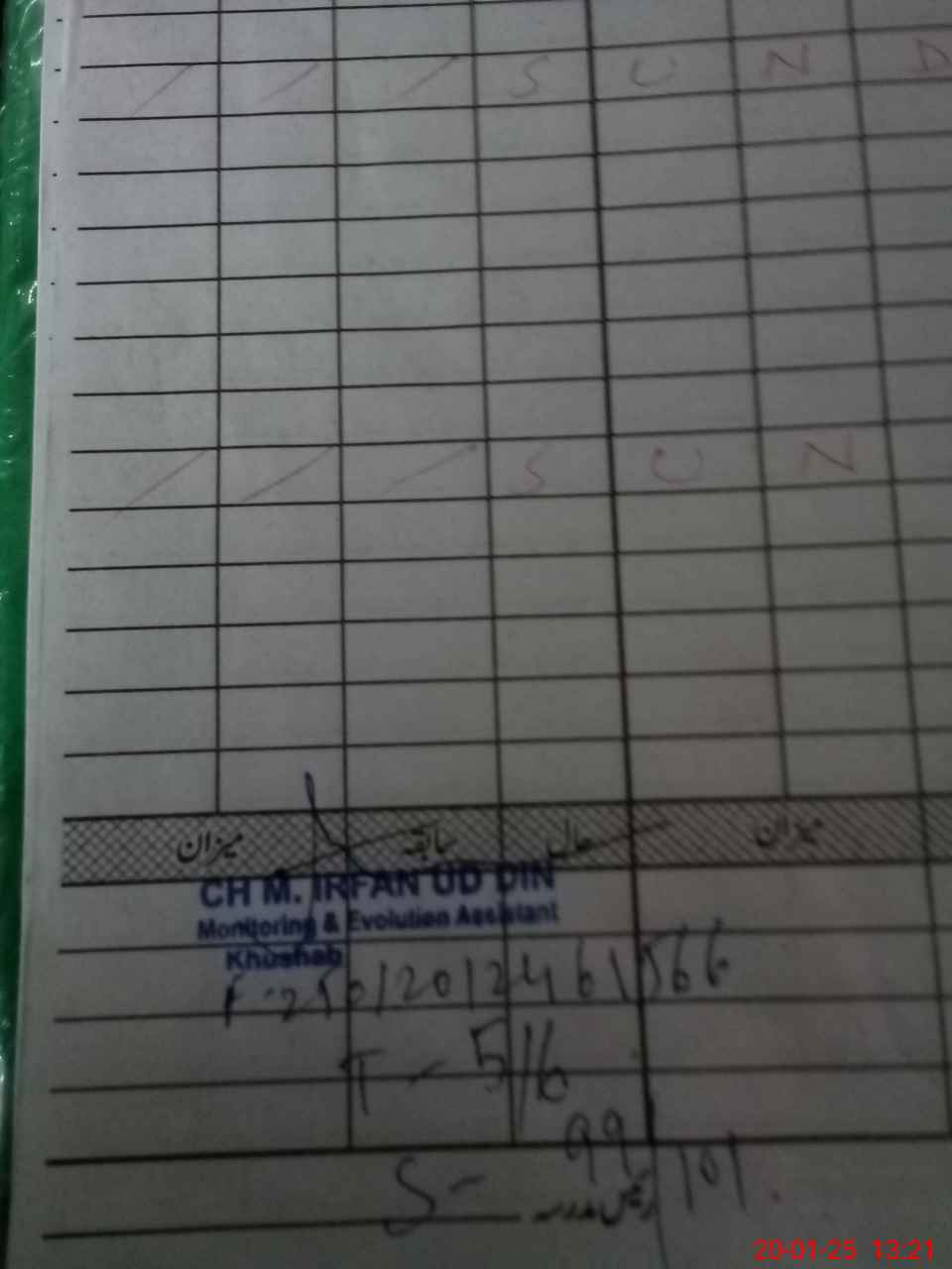 | CNIC | Full Name | Designation | R/C | Absence During Last Calender Month |