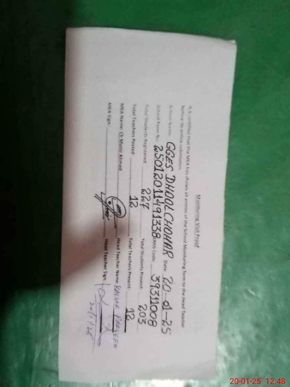 | EMIS Code: 39311008 | Name of School: GGES DHOOL CHOHAR | |||