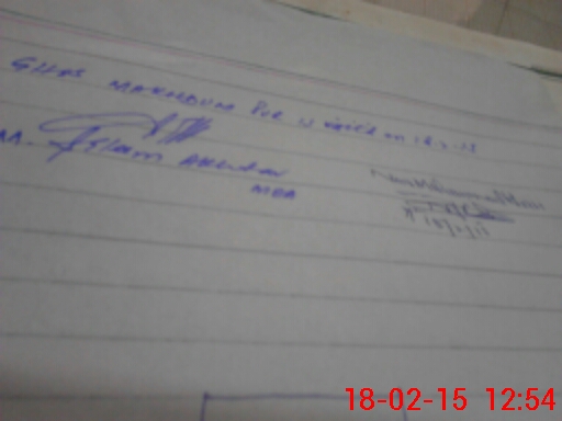 | Monitoring Date: 18-02-2015 | Start Time: 18-02-2015 11:54 AM | End Time: 18-02-2015 12:54 PM | Name of MEA: MU**** SA**** AK**** 13**** | |