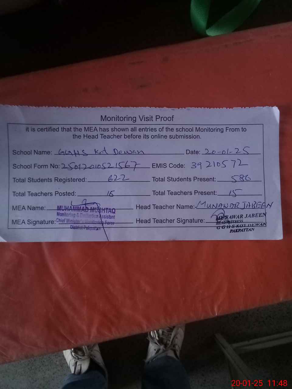 | EMIS Code: 39210572 | Name of School: GGHS KOT DEWAN | |||