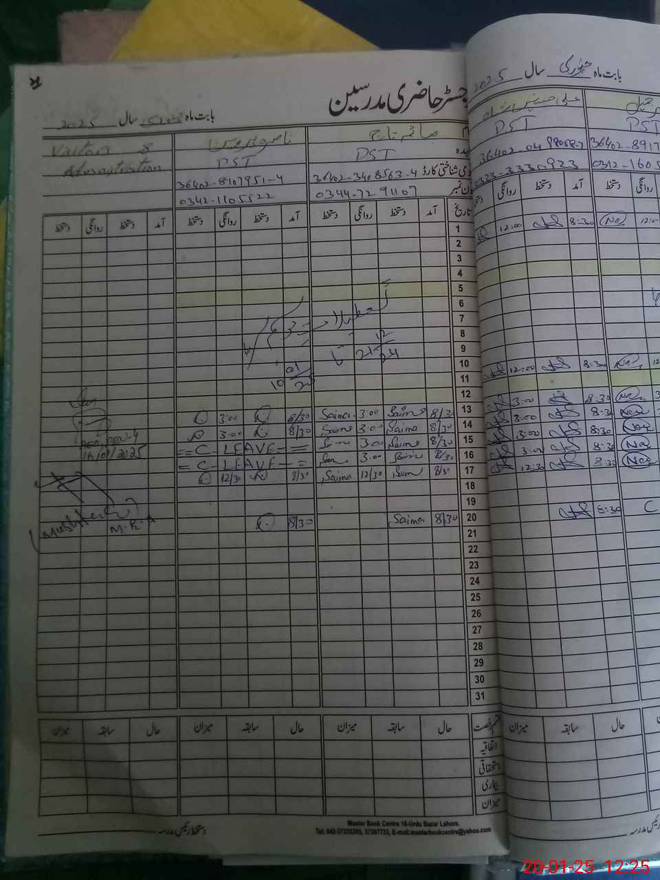 | CNIC | Full Name | Designation | R/C | Absence During Last Calender Month |