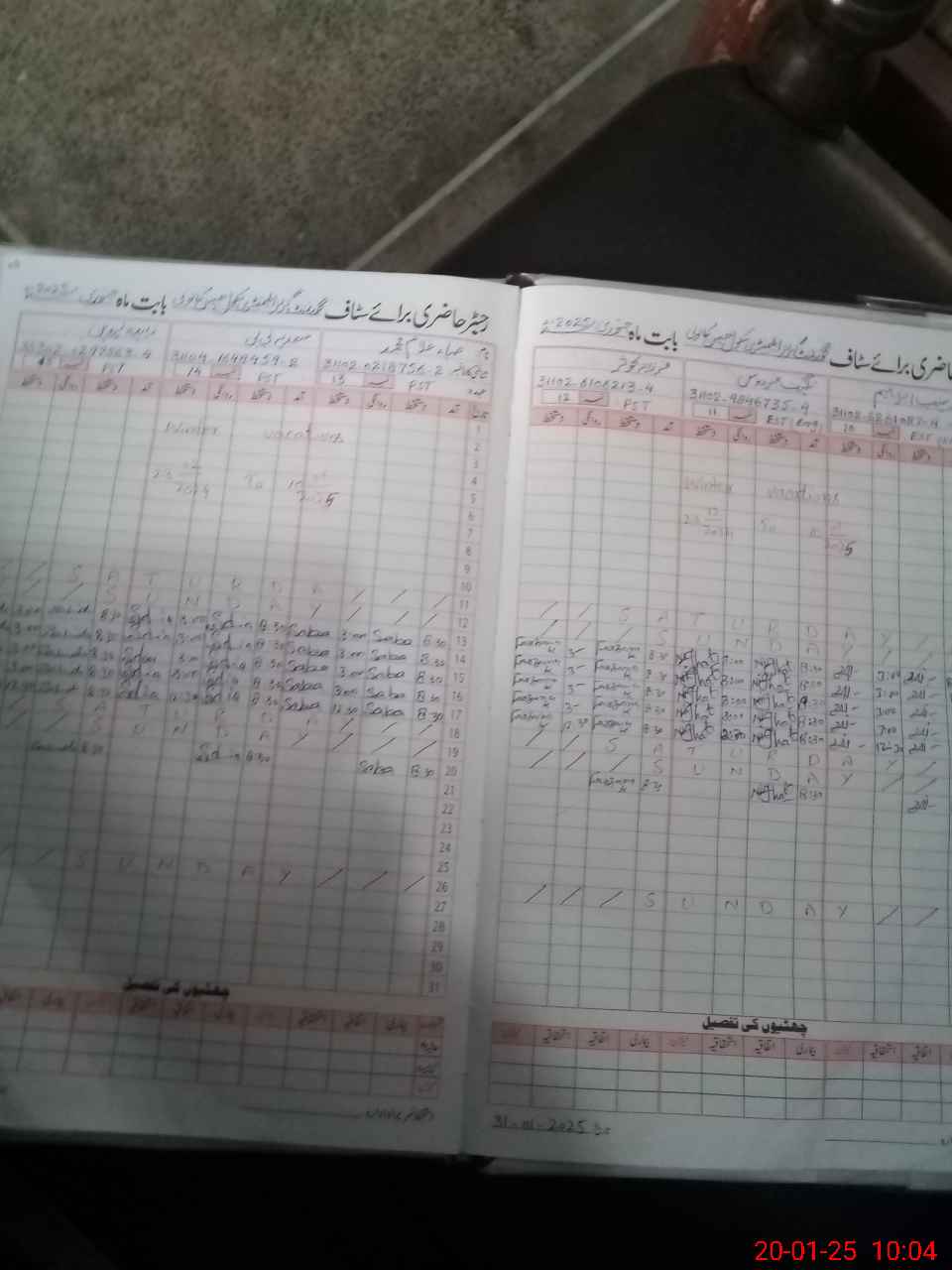 | CNIC | Full Name | Designation | R/C | Absence During Last Calender Month |