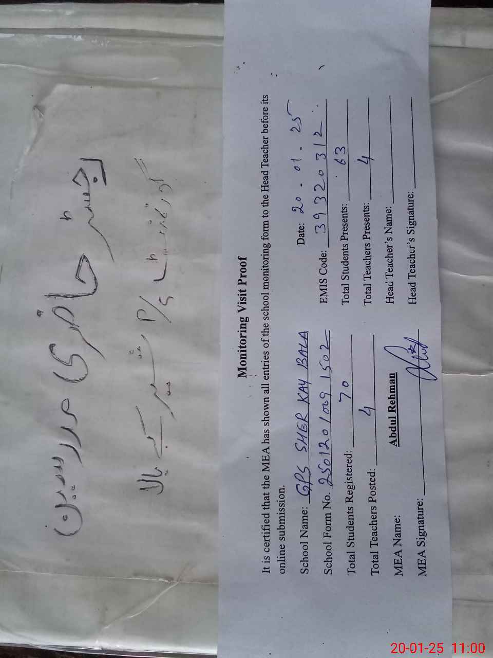 | EMIS Code: 39320312 | Name of School: GPS SHER KAY BALA | |||
