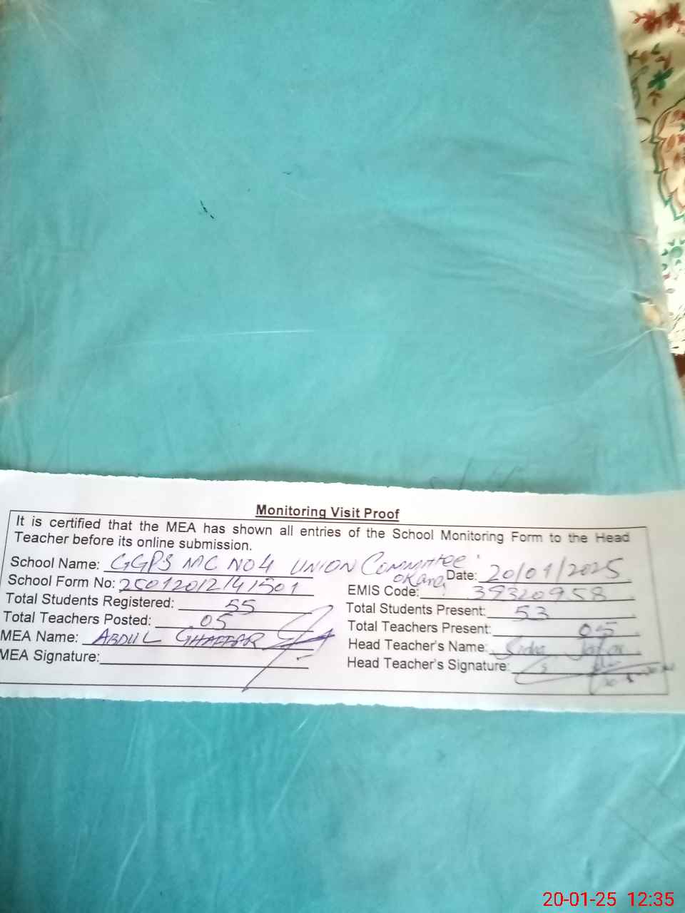 | EMIS Code: 39320958 | Name of School: GGPS MC NO. 4 UNION COMMITTEE | |||