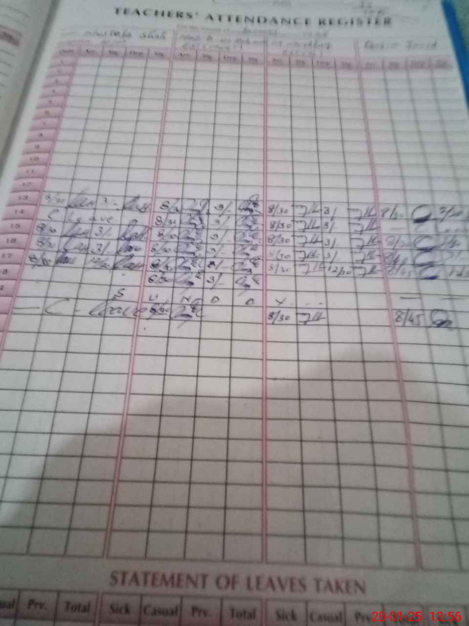 | CNIC | Full Name | Designation | R/C | Absence During Last Calender Month |
