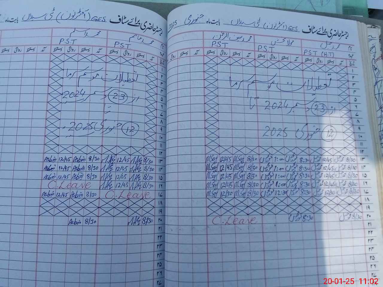 | CNIC | Full Name | Designation | R/C | Absence During Last Calender Month |
