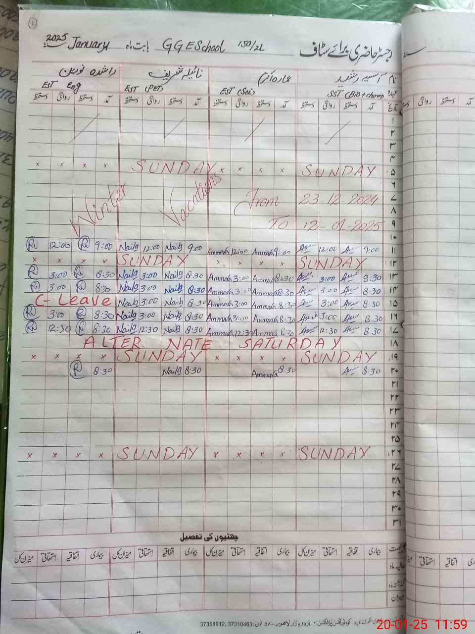 | CNIC | Full Name | Designation | R/C | Absence During Last Calender Month |