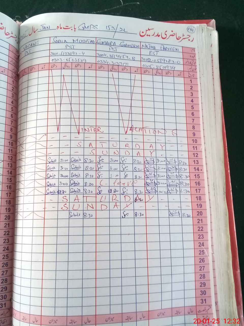 | CNIC | Full Name | Designation | R/C | Absence During Last Calender Month |