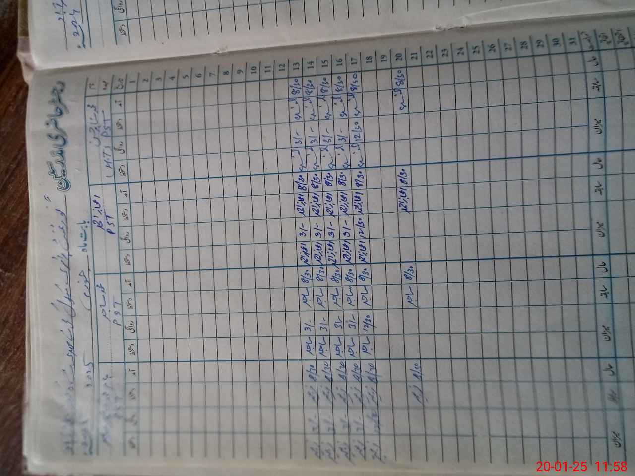 | CNIC | Full Name | Designation | R/C | Absence During Last Calender Month |
