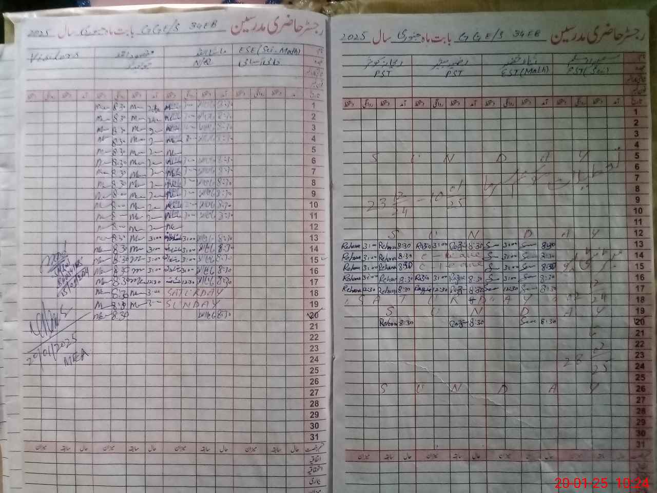 | CNIC | Full Name | Designation | R/C | Absence During Last Calender Month |