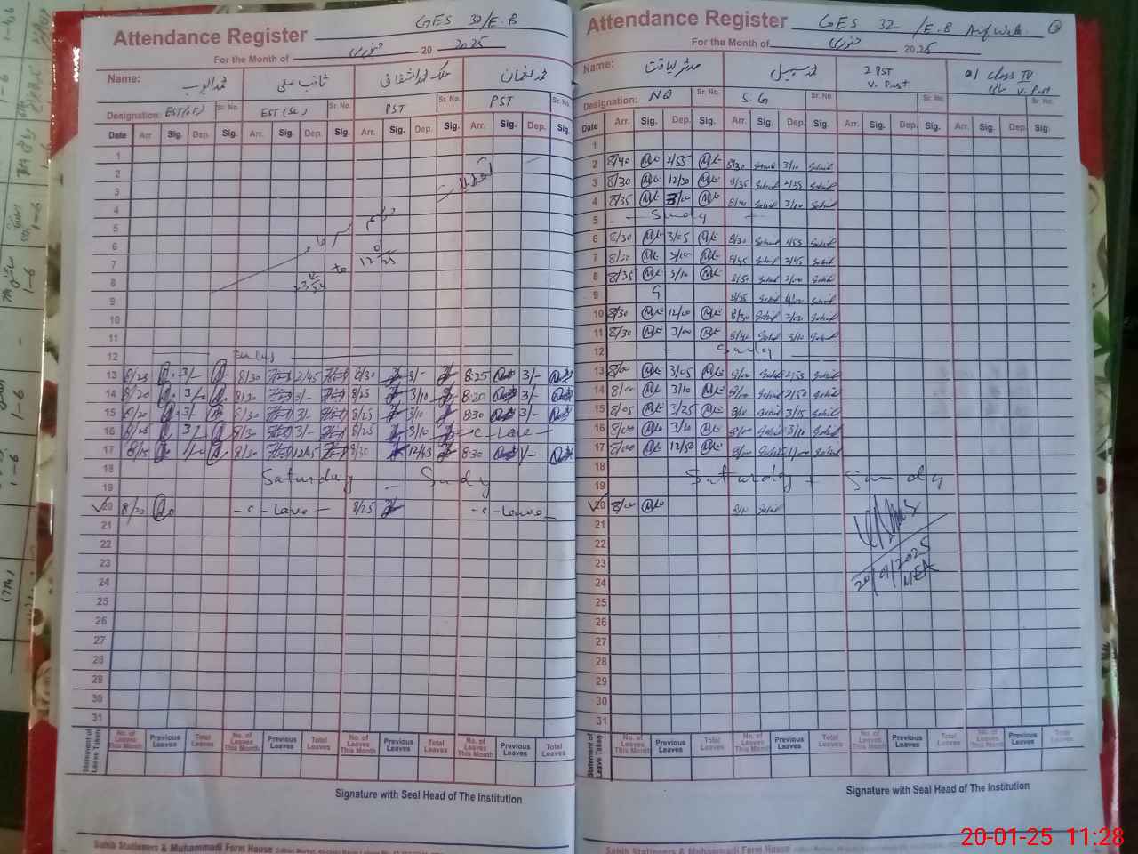 | CNIC | Full Name | Designation | R/C | Absence During Last Calender Month |