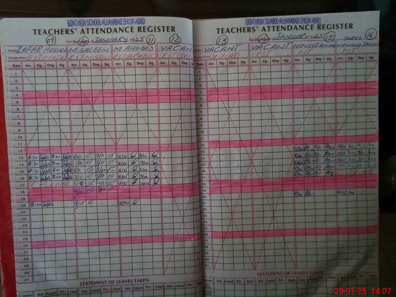 | Remarks (Use Separate Page if Required): Attendance as per roznamcha as visited during prayer break | |||||