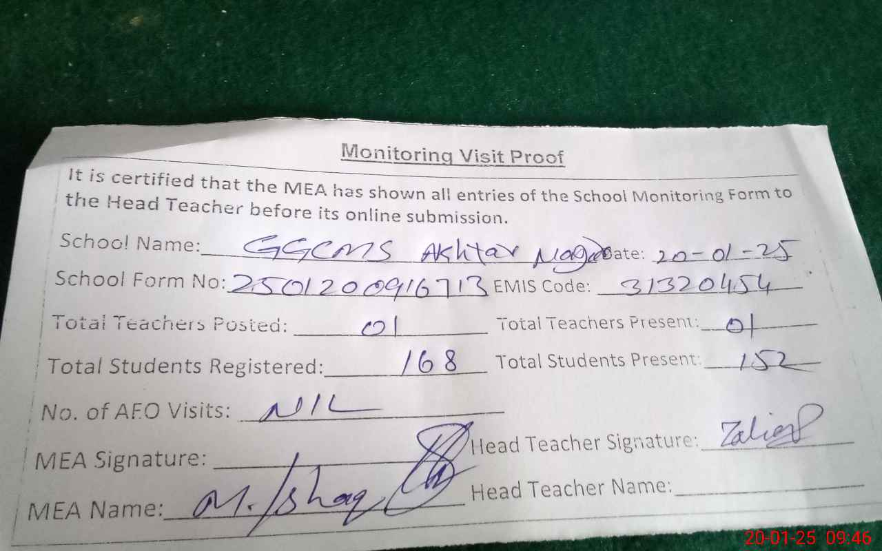 | EMIS Code: 31320454 | Name of School: GGCMS AKHTAR NAGAR | |||