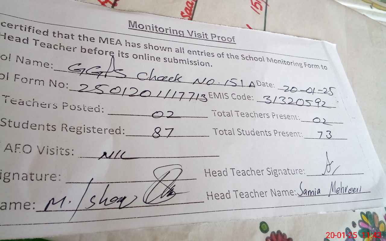 | EMIS Code: 31320592 | Name of School: GGPS CHAK NO. 151/A | |||